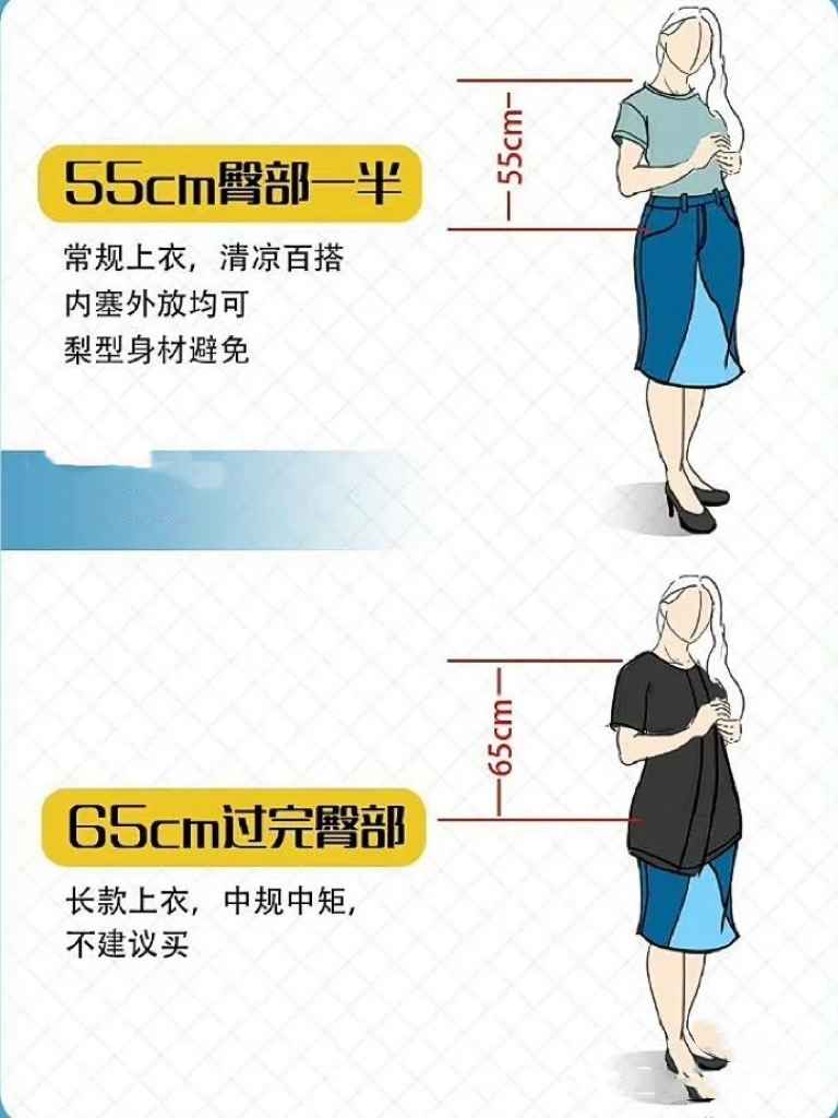 小个子要避免65cm的中长款上衣,不长不短很尴尬,容易压个子。