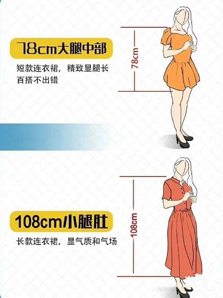 长款连衣裙可以试试108cm左右,长度到小腿,优雅又提气质。