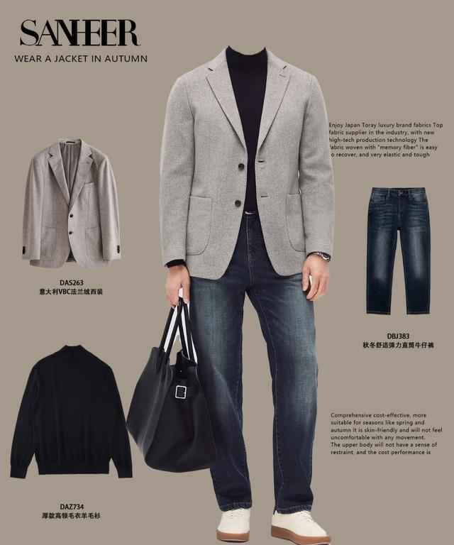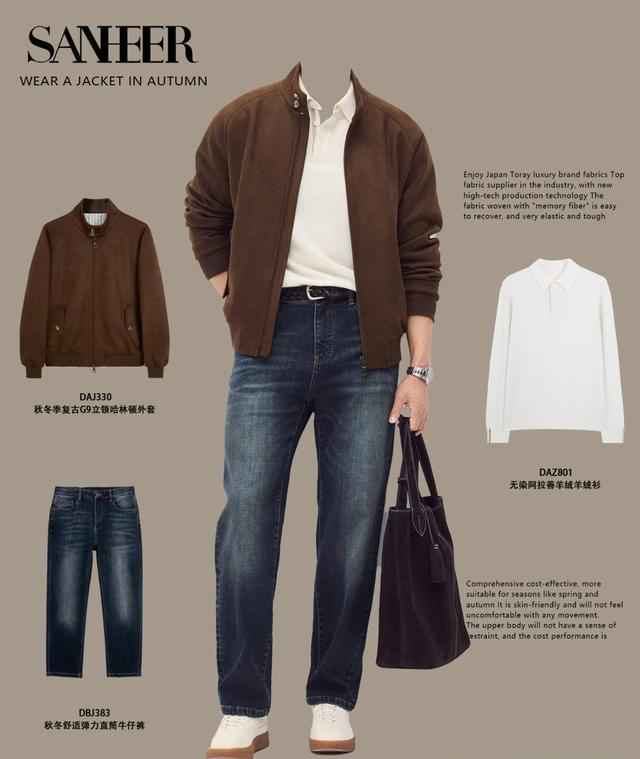 军绿、炭灰、藏蓝这些饱和度低的颜色最友好,避免荧光色系。用白色T恤做内搭提亮肤色,牛仔外套混搭卡其裤,硬朗又时髦。