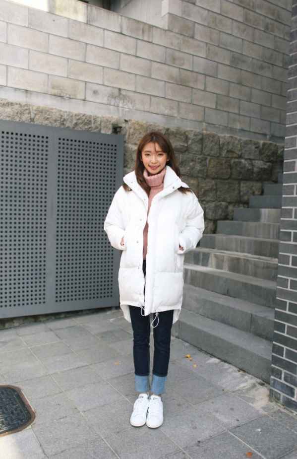 网友“怕冷的兔子”问:我在北方,冬天巨冷!白色长款羽绒服里面想穿厚棉裤,配什么外裤能既不显胖又保暖啊?