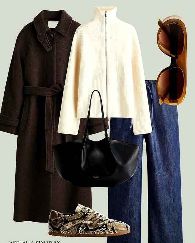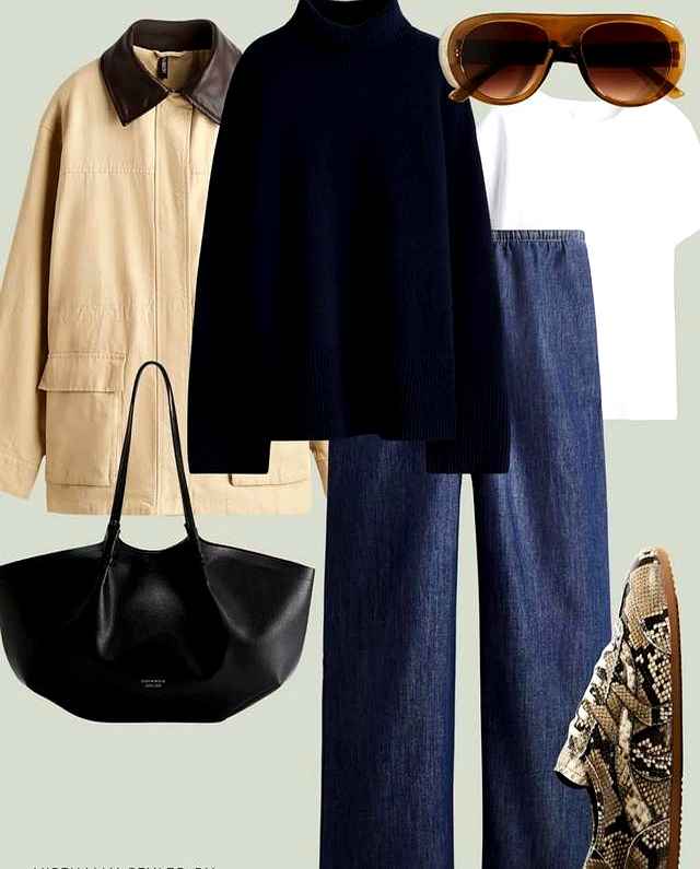 回到那9件基础款的搭配逻辑。为啥选羊毛大衣?因为它的H型剪裁不挑人,梨形或苹果身材都能穿出挺拔感。而且材质好的大衣,穿个三五年没问题。工装风外套更是万能,内搭毛衣就休闲,配衬衫就能通勤,这种灵活性才是基础款的灵魂。