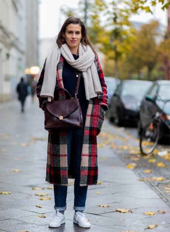 通勤干练法:选一条长条围巾,用最简单的“绕颈式”,在胸前交叉一下自然垂下,利落又保暖,不会在办公桌前显得拖沓-6。