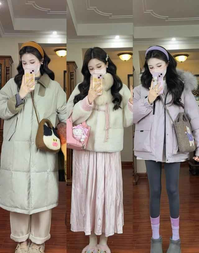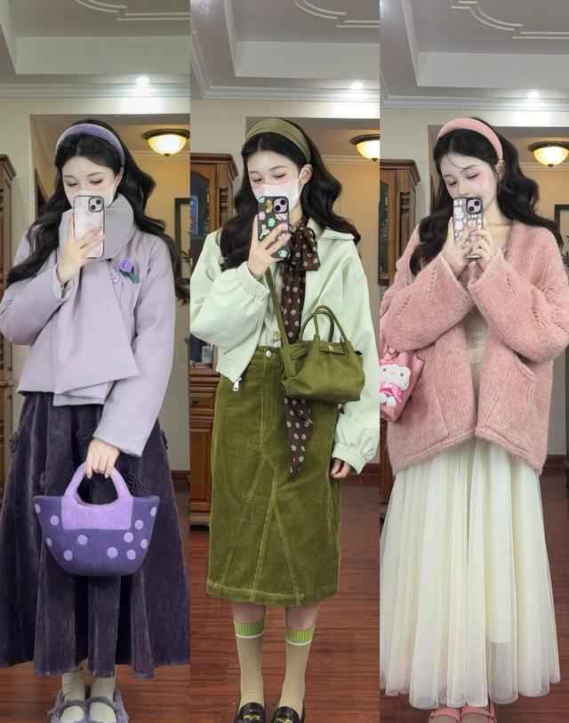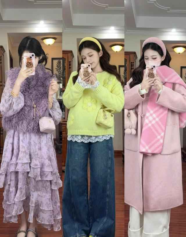 值得一提的是,甜妹穿搭现在讲究整体感,软萌和酷感混搭超流行。比如柔雾蓝大衣配白色高领和灰色针织裙,端庄又温暖;桃粉色套装加珍珠毛衣,日常或约会都合适;出游时用短款泰迪熊外套搭漆皮短裙,实用又俏皮。