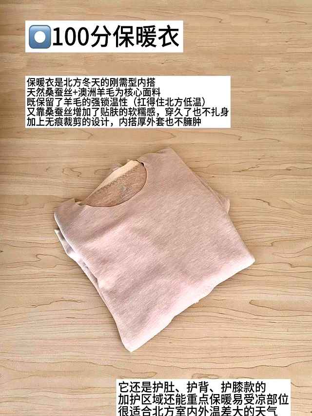投资一件高质量的保暖内衣是基础,比如融合桑蚕丝和羊毛的款式,能在保暖的同时避免腹部受凉,保护健康。
