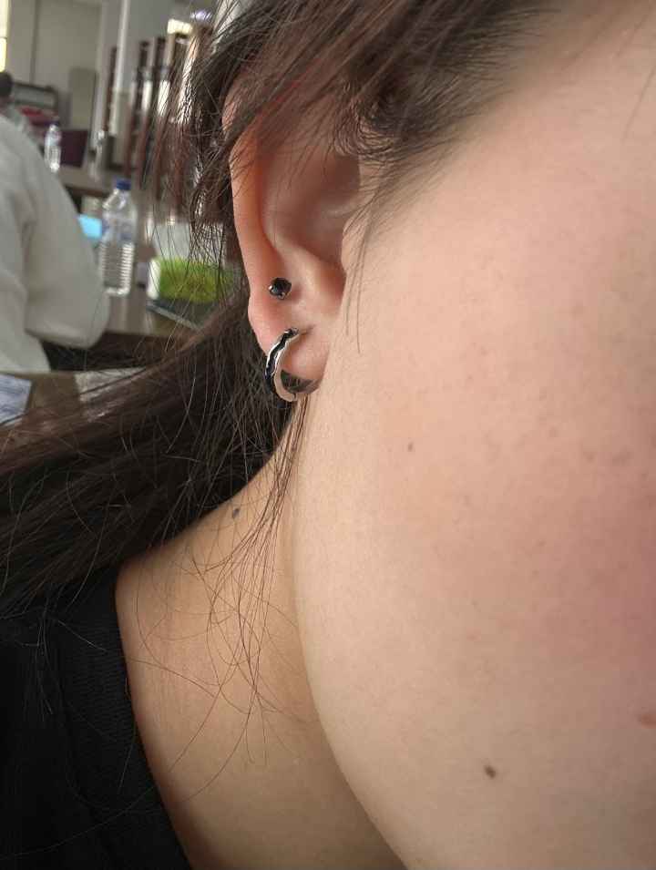 这款耳饰主打酷炫风格,黑色耳环配黑色耳钉,整套搭配起来超有型,另一只耳朵简单戴个耳钉就足够出彩,适合追求个性穿搭的女生。