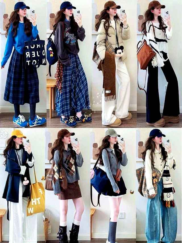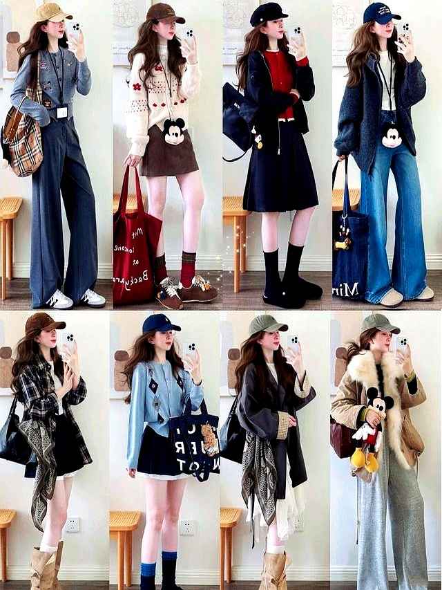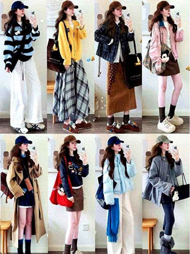 这组穿搭完美拿捏了“甜酷少女感”的精髓,核心秘诀就是“基础款+可爱点缀”:用卫衣、毛衣、阔腿裤或百褶裙做内搭,舒适又遮肉;加上卡通挂件、条纹或格纹元素、亮色小配件,瞬间摆脱单调;外套选宽松款式(比如风衣、羽绒服、牛仔外套),配一顶棒球帽,慵懒感十足,上学、逛街都超合适。