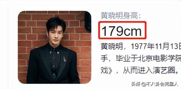 黄晓明的官方身高是1米79,这在男星里算挺高的了。但网友们老怀疑他虚报身高,这么多年来没少扒证据。