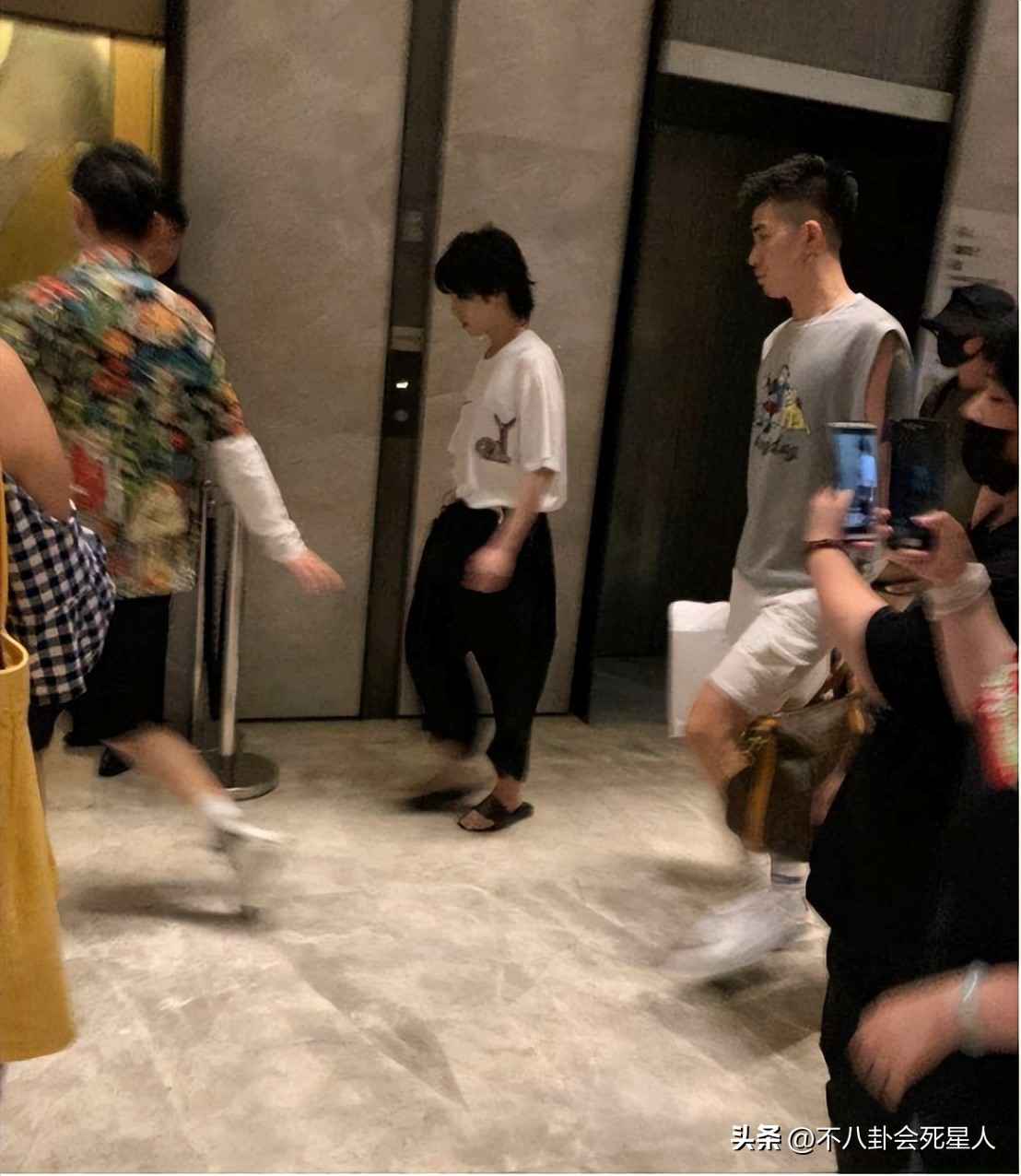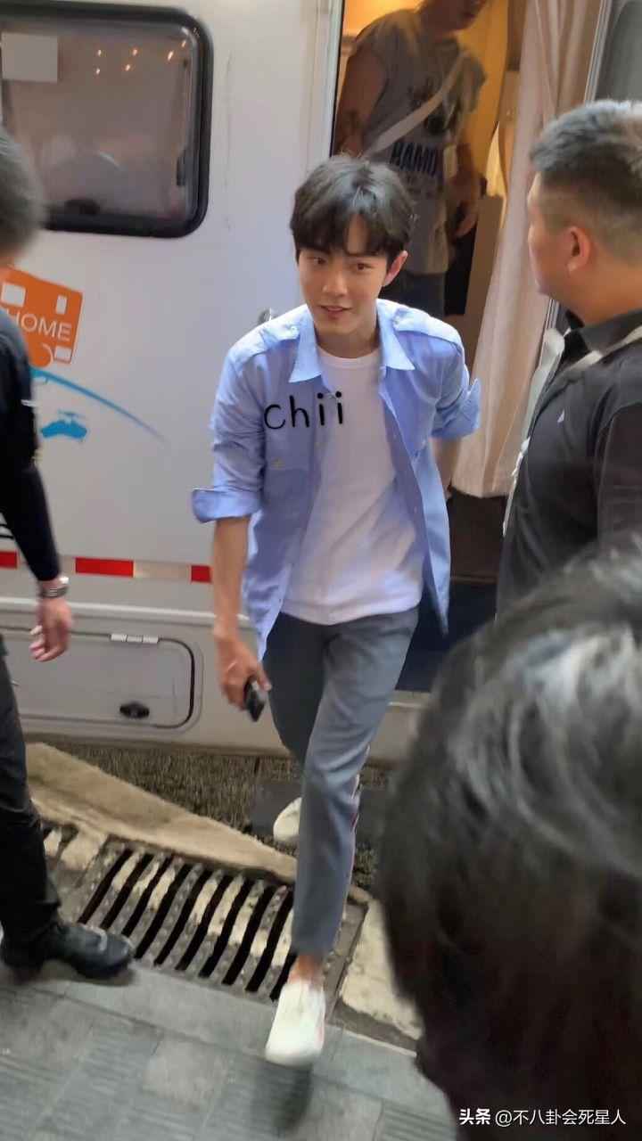 夏天衣服薄,不好加垫肩,肖战这1米83的个子常被拍成头大的小矮人。