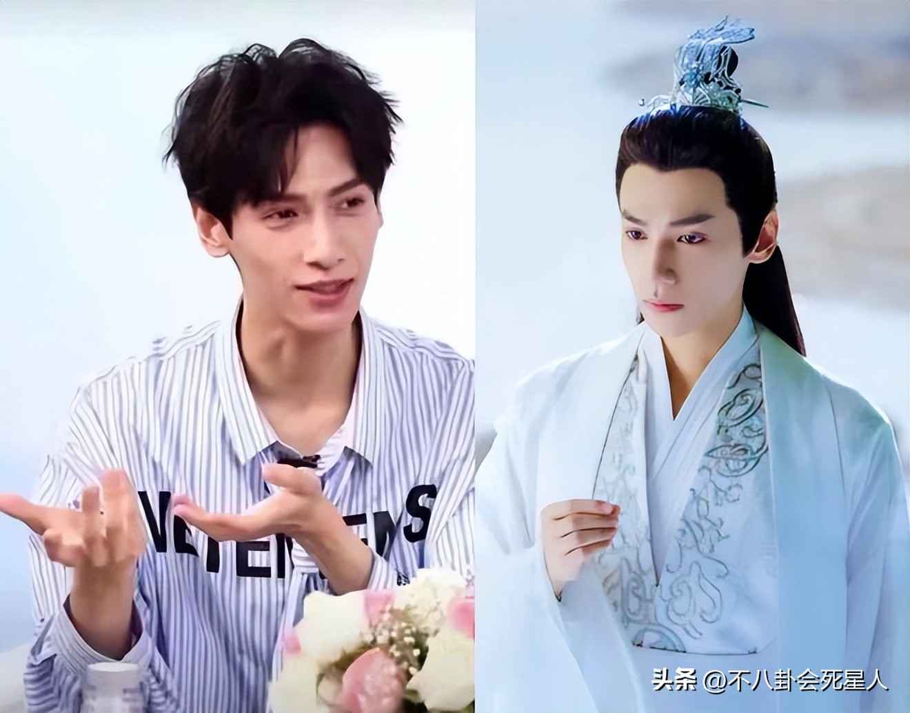 说到底还是肖战肩膀太窄。《陈情令》里就露过馅,但镜头不长没人在意,现在看,他肩膀内收明显,古装造型还显头大。