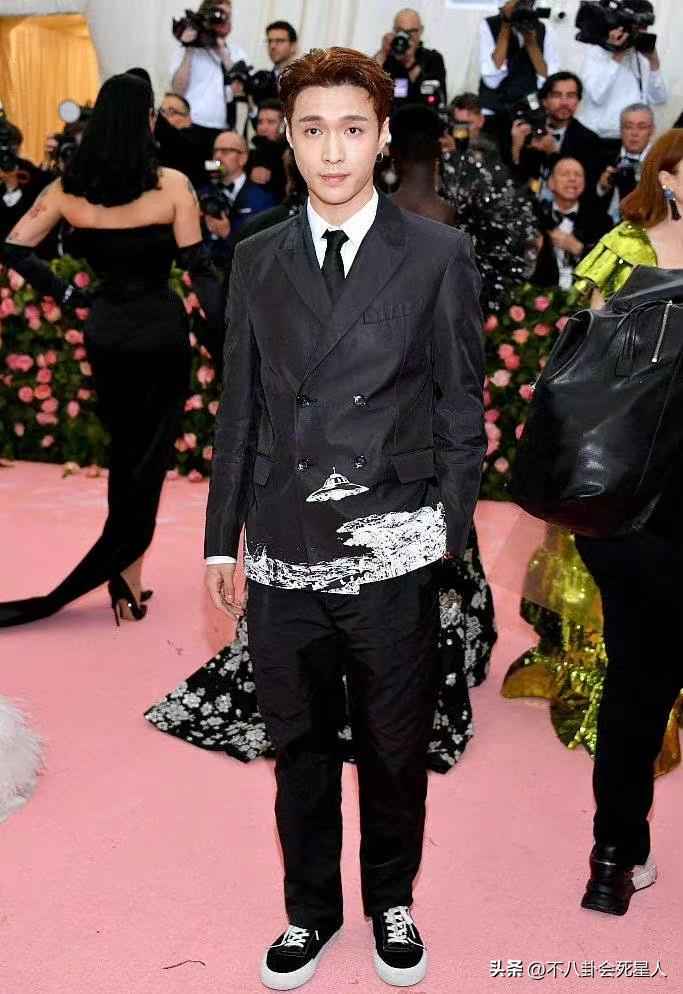 但张艺兴精修图的时尚感在生图里崩盘,落差大。红毯生图穿黑色套装,却没有干练气场,上身比下身长,腿短得裤子撑不满褶子,尴尬。