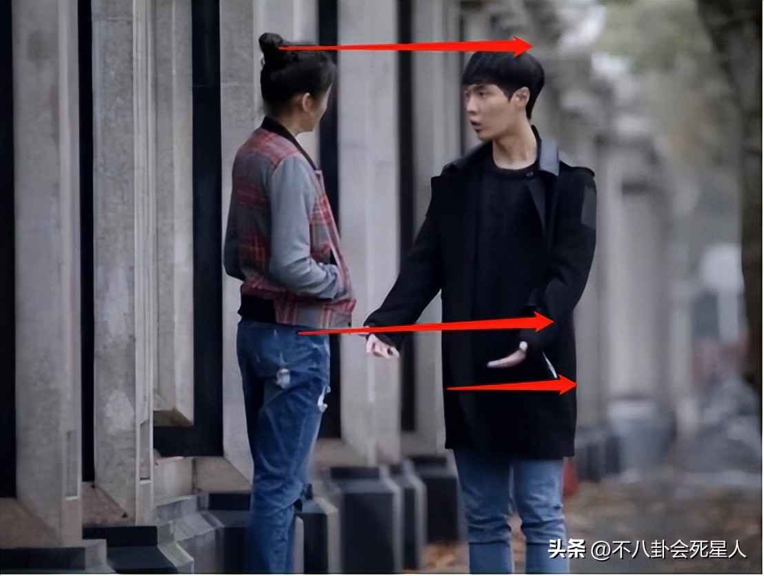 但同样身高,视觉上张艺兴腿特短,比关晓彤高的他看着反而矮2厘米,关晓彤腿长到他腰间,可见比例多重要。