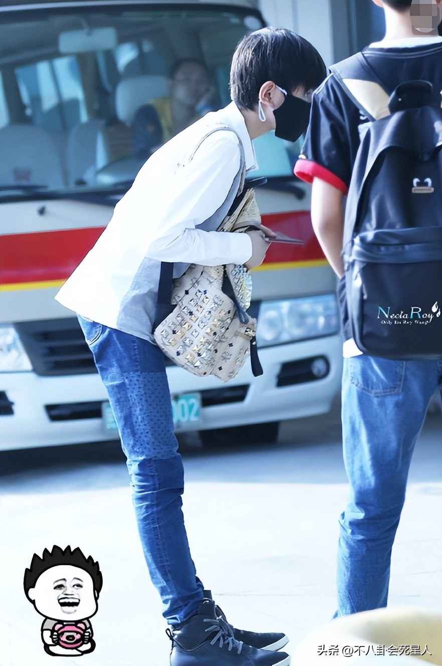 王源个子不高,腿像竹竿瘦小,就算背名牌包穿潮牌,也没有精修图贵气,反而小气。