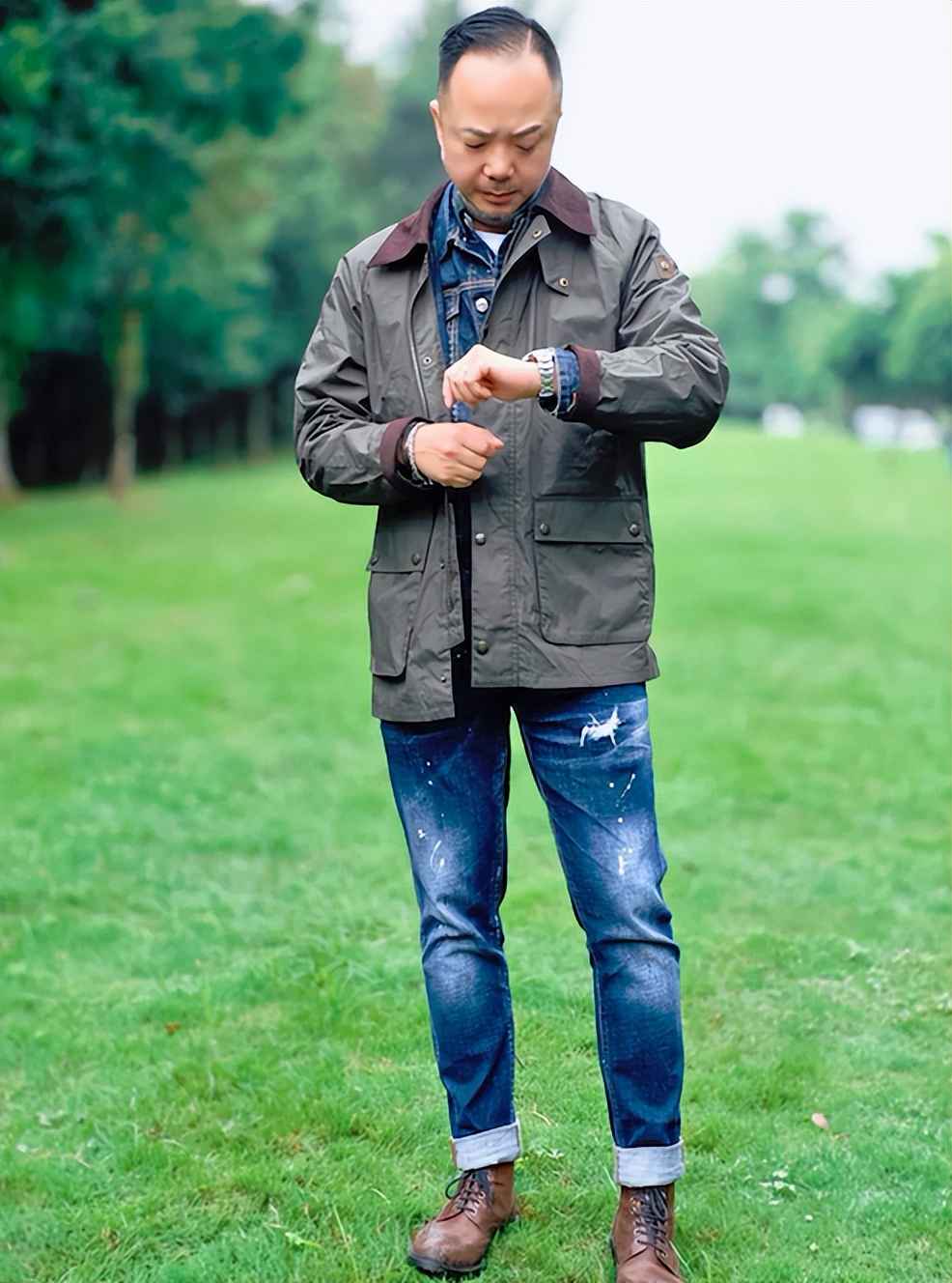 杭州大叔的穿搭哲学:简单单品穿出不凡气质,拼色领夹克配休闲靴成亮点
