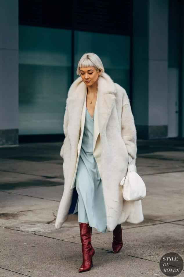 网友小美提问:我有一件白色皮草,配什么裙子去上班比较合适?
