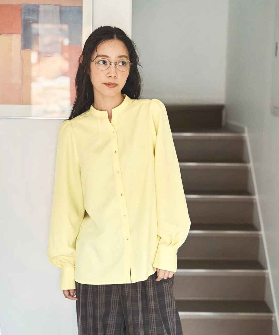 明亮的黄色衬衫,就像把秋日森林的阳光穿在身上,搭配格纹长裤,张弛有度的造型展现搭配技巧。