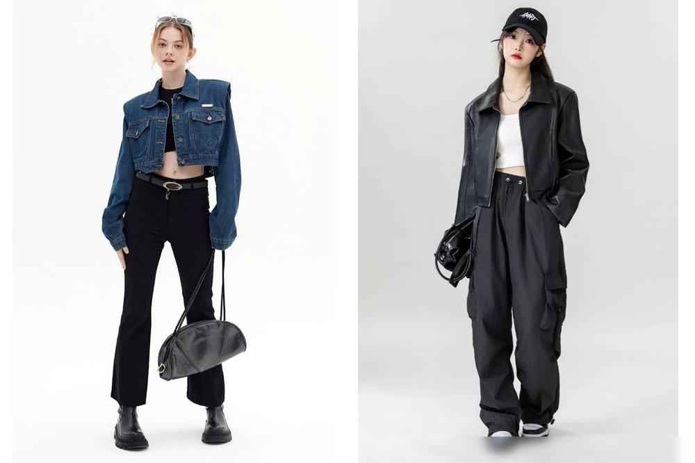 还有外套,别再选长到屁股以下的“oversize”了!短款外套才是显高神器——尤其是腰线高的,比如小西装或棒球服短款,配条高腰牛仔裤或百褶裙,瞬间把腰线提到胸部以下,视觉上直接“九头身”。