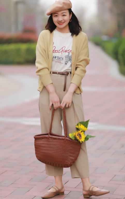 可以搭配带蕾丝装饰或下摆宽松的小衬衫,比如土黄色衬衫。只要喜欢,各种上衣都能试,但建议选冷色调衣服更显瘦,避免褶皱多的款式。