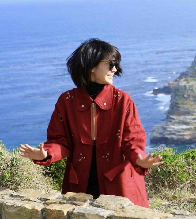 56岁许晴再次出国游!风衣+皮裤+短发造型,时尚减龄又高级
