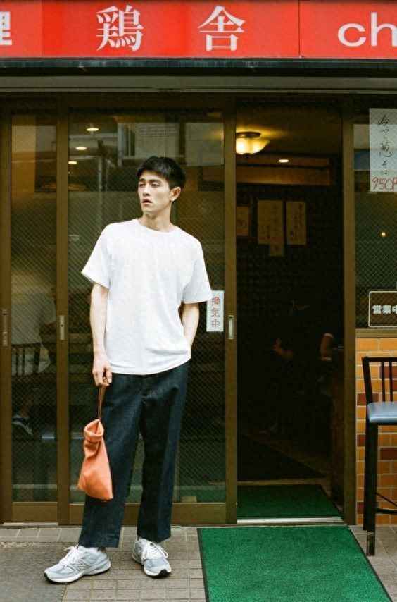 夏天穿T恤很常见,但瘦男生要避开贴身的款式。宽松版型能修饰肩膀线条,增加上半身的厚度。