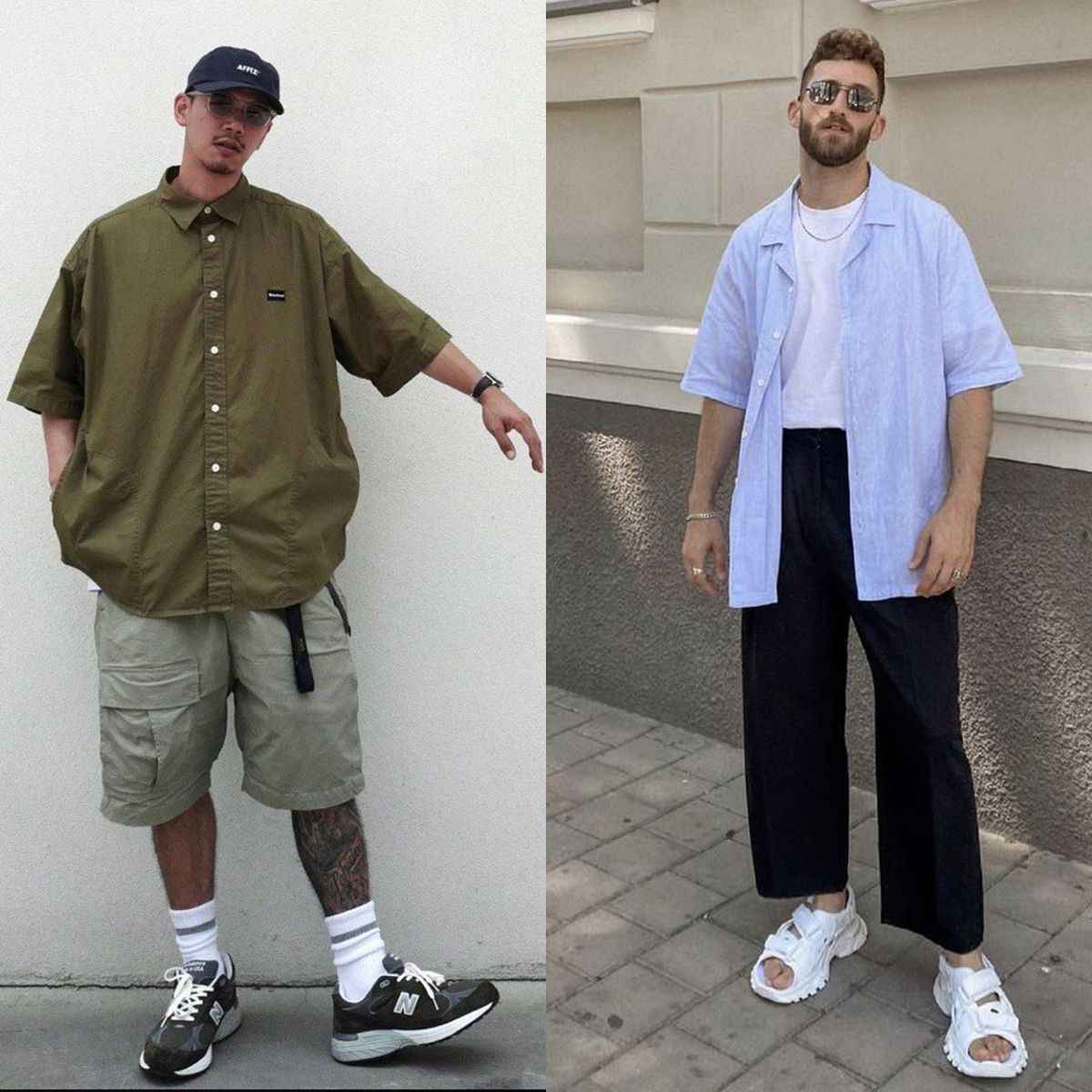 宽松衬衣是瘦男生的福音,版型能增加体积感,避免显得单薄。搭配短裤或宽裤都很时髦。