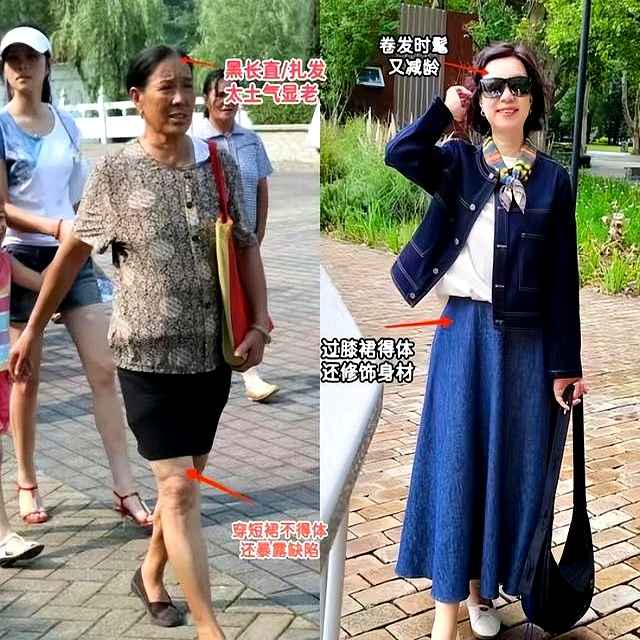 四五十岁女人穿搭指南:裙过膝、发卷不乱,优雅又减龄