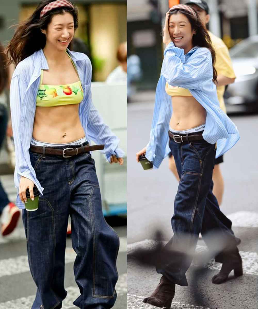 “内裤外露”要讲究分寸,露过头就容易艳俗。最常见错误就是“内裤露一半”,显得刻意又廉价。