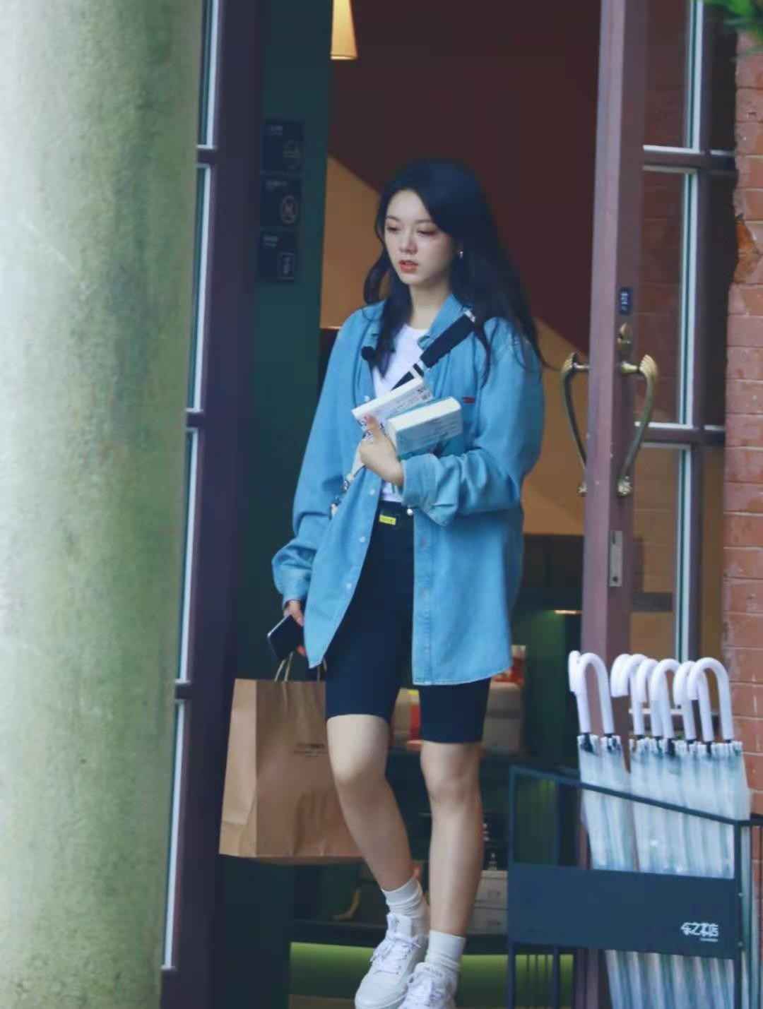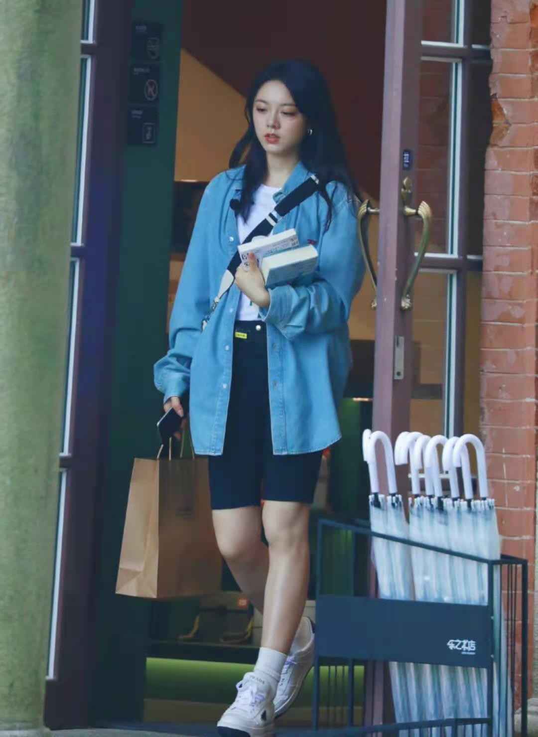 另外,骑行短裤长度接近膝盖,小个子穿容易压身高,建议165cm以上的女生尝试。但它和牛仔衬衫组合起来特别洋气,赵今麦就穿出了惊艳效果。如果你条件合适,试试这套搭配,绝对让人眼前一亮。
