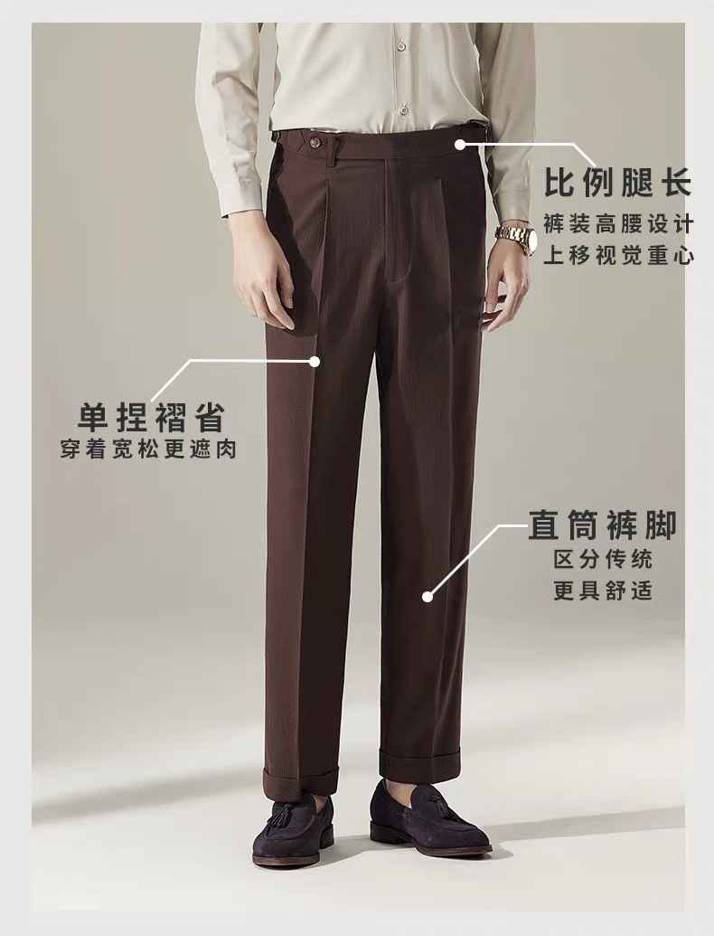 若想突出腰线,选择中高腰版型的西裤,能优化身材比例,增添绅士韵味。